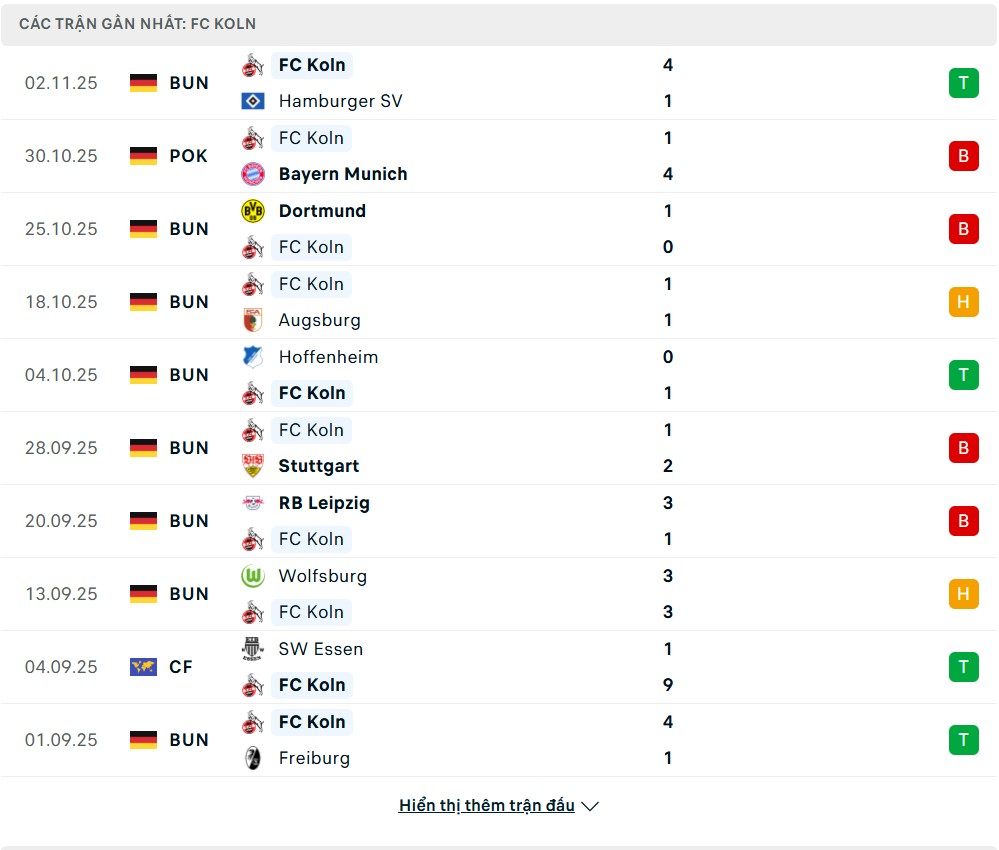 Trong khi đó, FC Koln – tân binh của mùa giải năm nay – lại gây bất ngờ khi hòa nhập cực nhanh. Họ thắng 4, hòa 2, thua 3, ghi 16 bàn và thủng 12 bàn. Cách vận hành của “Bầy Dê” đầy kỷ luật, pressing hợp lý và khả năng phản công sắc bén khiến nhiều đối thủ ngã ngửa.