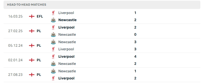 Phong độ gần đây Newcastle vs Liverpool