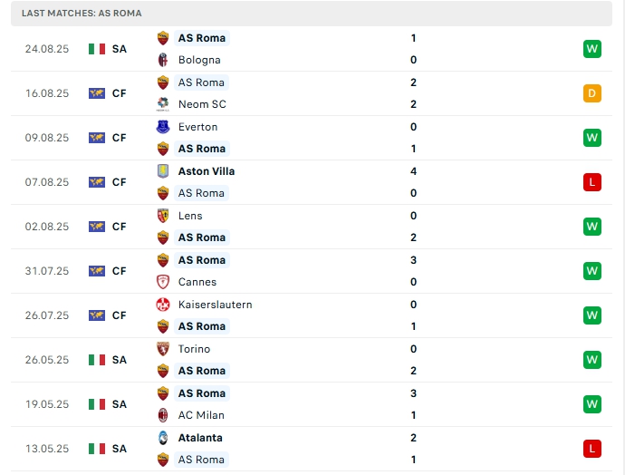 Bên kia sân, Roma ở vòng đấu mở màn dù gặp khó trước Bologna, nhưng họ có được cho mình chiến thắng 1-0 trước đối thủ, qua đó có khởi đầu thuận lợi ở mùa giải năm nay, phong độ thời gian qua của Roma là khá tốt họ thắng 2 hòa 1 ở 3 trận gần nhất, khi thi đấu xa nhà Roma cũng đang chơi tốt với 4 chiến thắng, 1 thất bại ở 5 trận vừa qua.
