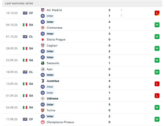 Bên kia sân, Inter Milan sau 6 trận đấu họ có được 12 điểm với 4 chiến thắng cùng 2 thất bại, đang xếp vị trí thứ 4 trên BXH, ở vòng đấu gần nhất Inter Milan có chiến thắng trước Cremonese, đây cũng là chiến thắng thứ 3 của họ ở 3 vòng gần nhất, phong độ của Inter Milan thời gian qua là khá tốt, họ có 5 chiến thắng liên tiếp ở giải đấu chính thức, khi xa nhà Inter Milan sau 2 vòng có được 1 chiến thắng cùng 1 thất bại.