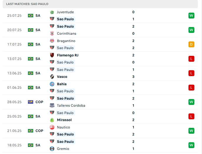 - Phong độ Sao Paulo
