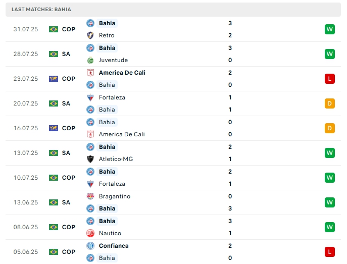 Bahia sau 15 trận đấu hàng công của đội bóng này mang về 20 bàn thắng cùng hàng thủ khá chắc chắn khi chỉ nhận 13 bàn thua, 2 trận gần nhất hàng công của Bahia nổ súng 6 lần và cả 2 trận đều khép lại vượt mốc 3 bàn, việc hàng công đang chơi ấn tượng giúp Bahia đang bay cao ở mùa giải năm nay.