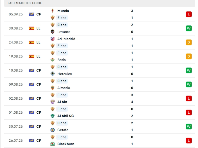 Elche ở 3 vòng đấu đầu tiên, hàng công mang về 4 bàn thắng cùng hàng thủ nhận 2 bàn thua, lối chơi của Elche thiên về phòng ngự, cả 3 trận đấu vừa qua khép lại không quá 2 bàn và 2/3 trận xa nhà gần nhất cũng tương tự.