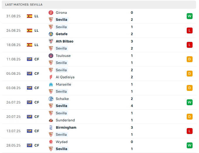 Sevilla ở 3 trận đấu đầu tiên họ mang về chỉ 1 chiến thắng và nhận 2 thất bại, có được 3 điểm, xếp ở vị trí thứ 12 trên BXH, ở ngày ra quân họ thất bại 2-3 trước Bilbao, sau đó là trận thua 1-2 trước Getafe và gần nhất là niềm vui chiến thắng trước Girona, phong độ thời gian qua của Sevilla không tốt khi chỉ thắng 1 ở 6 trận gần nhất, trong đó có 3 hòa và 2 thất bại, trên sân nhà Sevilla cũng trải qua chuỗi 4 trận không thắng vừa qua với 2 hòa cùng 2 thất bại.