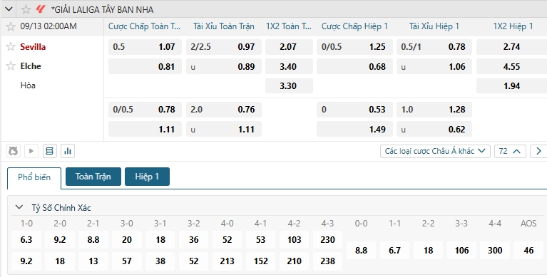 Soi kèo châu Á, kèo chấp Sevilla vs Elche