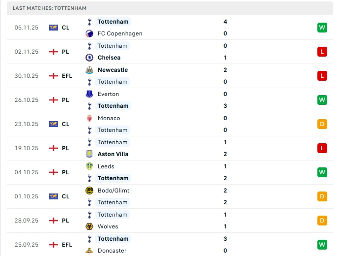 Tottenham sau 10 trận đấu họ mang về 5 chiến thắng, 2 hòa cùng 3 thất bại, có được 17 điểm và đang xếp vị trí thứ 6 trên BXH, ở vòng đấu gần nhất Tottenham nhận thất bại 0-1 trước Chelsea, đây là trận thua thứ 2 liên tiếp của Gà Trống, dù vừa có chiến thắng trước Copenhagen ở sân chơi Champion League, nhưng phong độ thời gian qua của Tottenham là không tốt, trên sân nhà đoàn quân của HLV Thomas Frank cũng chỉ thắng 1 ở 4 trận vừa qua.