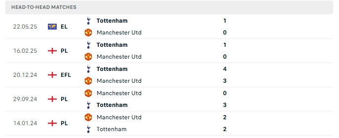 Lịch sử đối đầu của Tottenham vs Man Utd