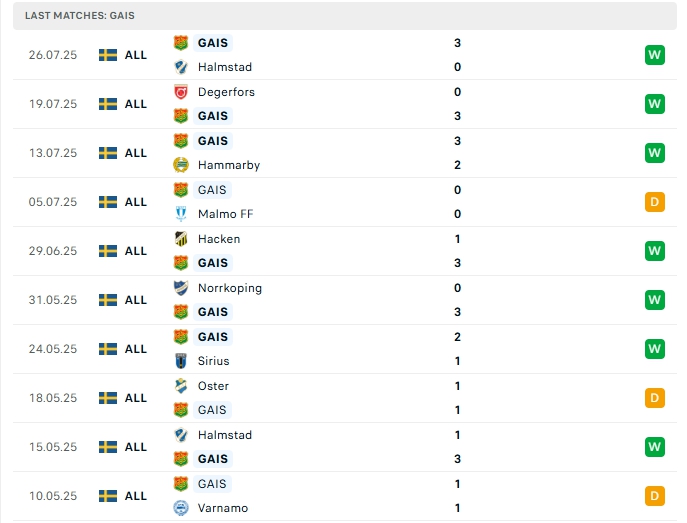 GAIS sau 17 vòng đấu hàng công của đội bóng này mang về 27 bàn thắng cùng hàng thủ cực kỳ chắc chắn khi nhận 13 bàn thua, 5 trận gần nhất GAIS chỉ nhận đúng 3 bàn thua, khi thi đấu xa nhà hàng thủ của GAIS cũng chơi cực kỳ chắn chắn với chỉ 3 bàn thua phải nhận khi xa nhà.