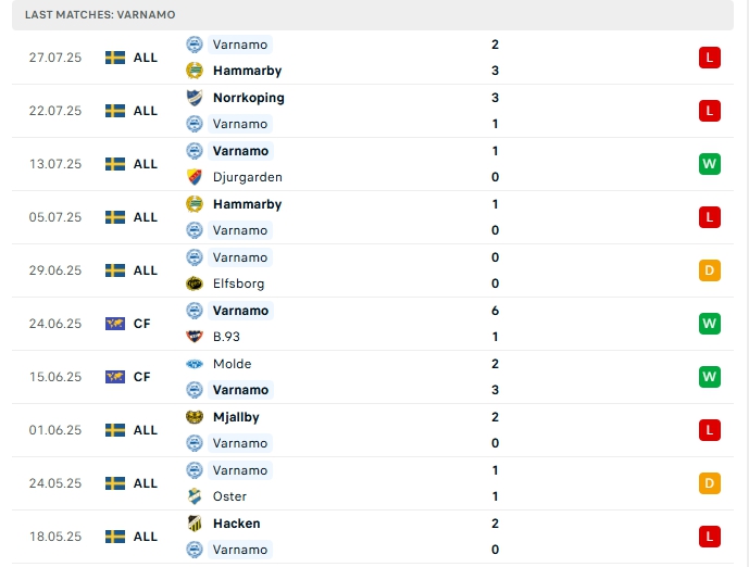 Varnamo sau 17 vòng đấu hàng công của đội bóng này mang về 15 bàn thắng cùng hàng thủ nhận 31 bàn thua, 3/5 trận gần nhất của Varnamo khép lại 90 phút không quá 2 bàn thắng, 3/5 trận trên sân nhà vừa qua của Varnamo cũng khép lại với kết quả tương tự, Varnamo chơi không tốt ở hàng công nhưng hàng thủ chơi tệ buộc họ phải sớm cải thiện.