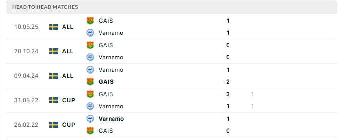 Những màn đụng độ giữa Varnamo và GAIS thường diễn ra chặt chẻ với ít bàn thắng được tạo ra, 3 lần gặp nhau gần nhất của hai đội và 3/5 lần đón tiếp GAIS trên sân nhà của Varnamo khép lại không quá 2 bàn.