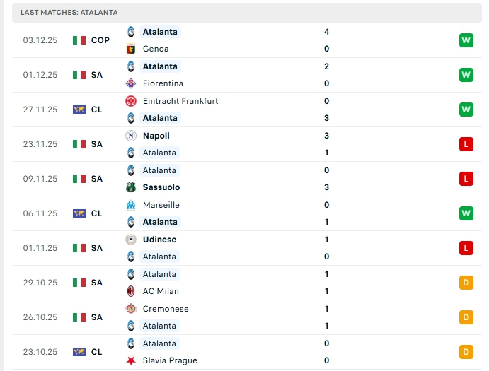 - Phong độ Atalanta