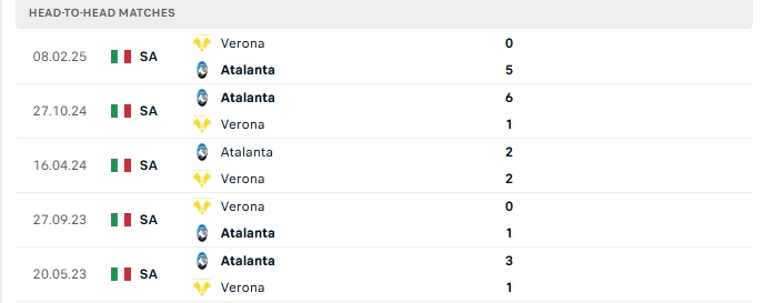 Lịch sử đối đầu của Verona vs Atalanta